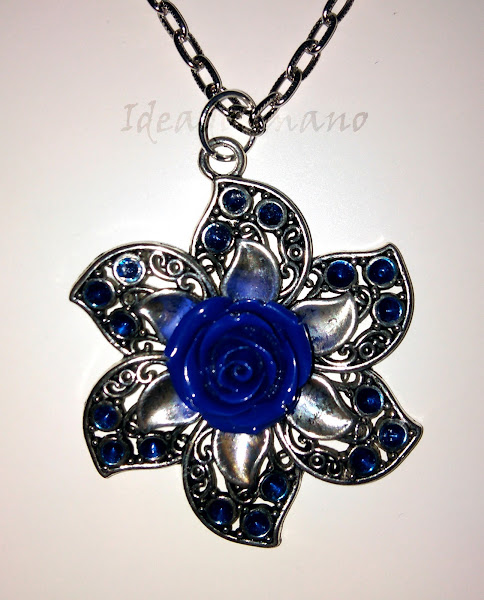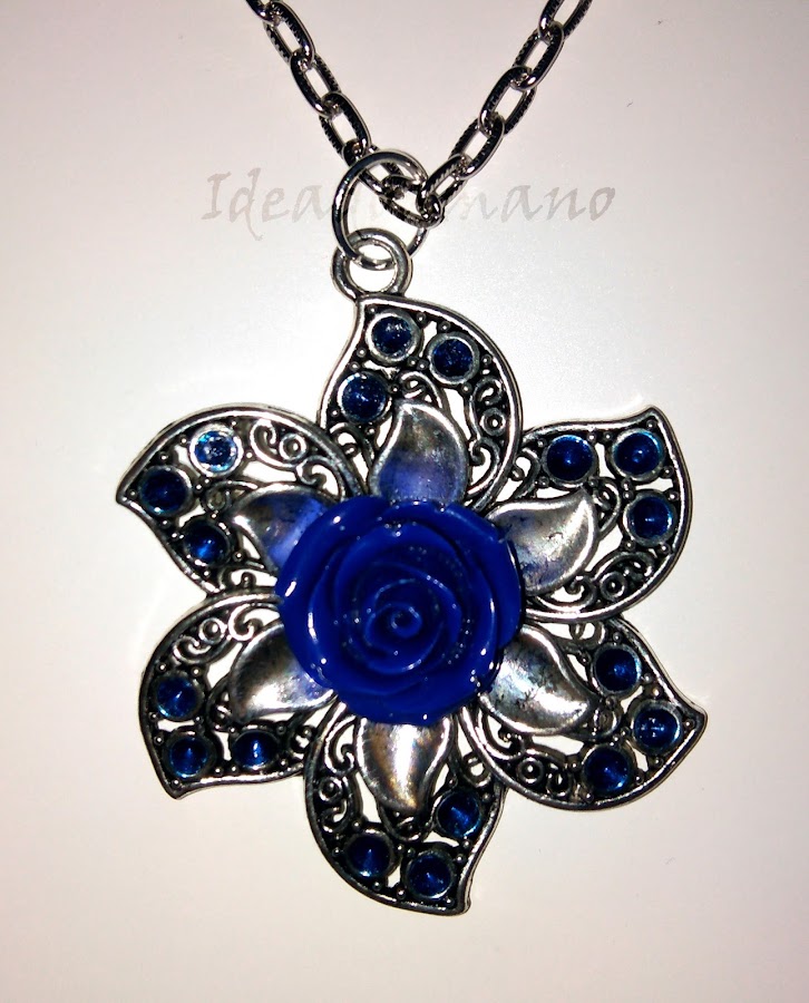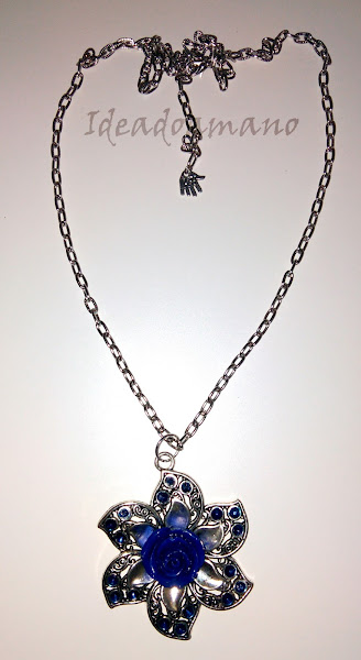 Y os enseño también este collar largo con esta flor grande que además he decorado en tonos azules: