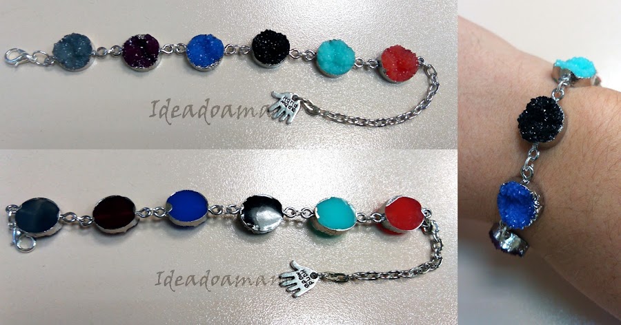 Bueno, voy al tema que me lío. Lo primero que os voy a enseñar es una pulsera que he hecho con unas piezas que compré en el Creativa de Madrid, y que tenía aún guardadas (tan bien guardadas que me ha costado encontrarlas). Me parecen preciosas y lo bueno es que son bonitas por ambos lados, por lo que si se te dan la vuelta quedan también bien.