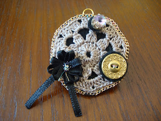 El primero que os propongo es un colgante hecho con crochet y adornado con cintas y botones, es obra de Creaciones Batiburillo y como ellos mismo nos cuentan también podéis usarlo de broche. Tutorial aquí.