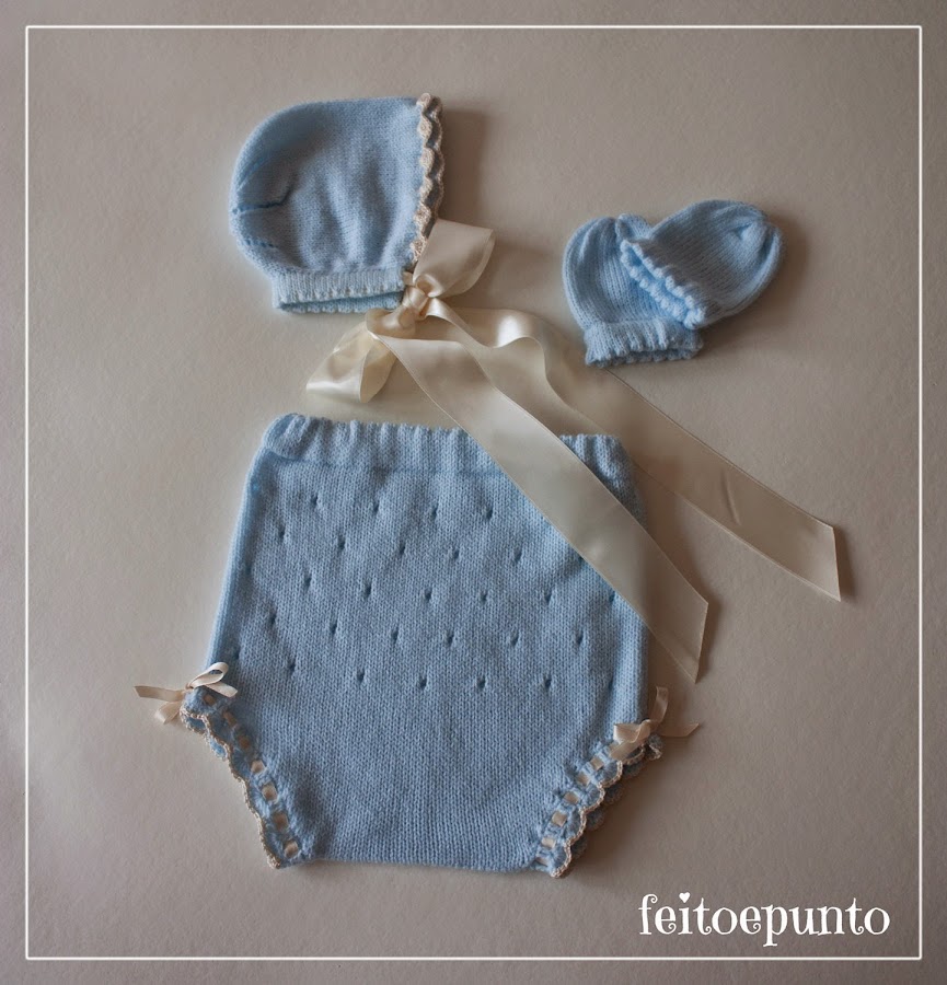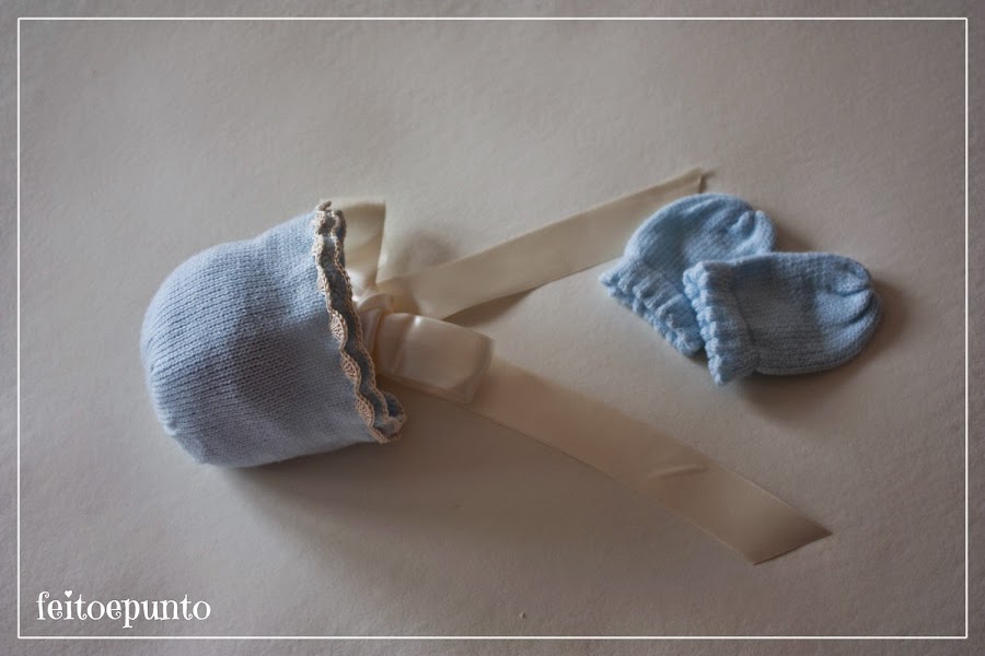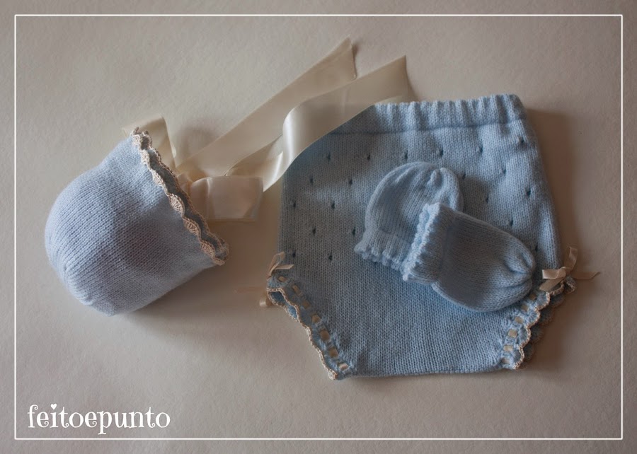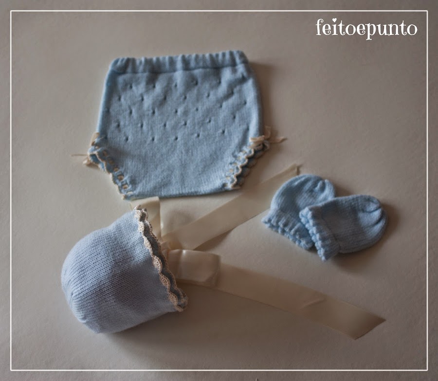 Mi clásica braguita, esta vez hecha en lana en lugar de perlé, una capota y un juego de manoplas!