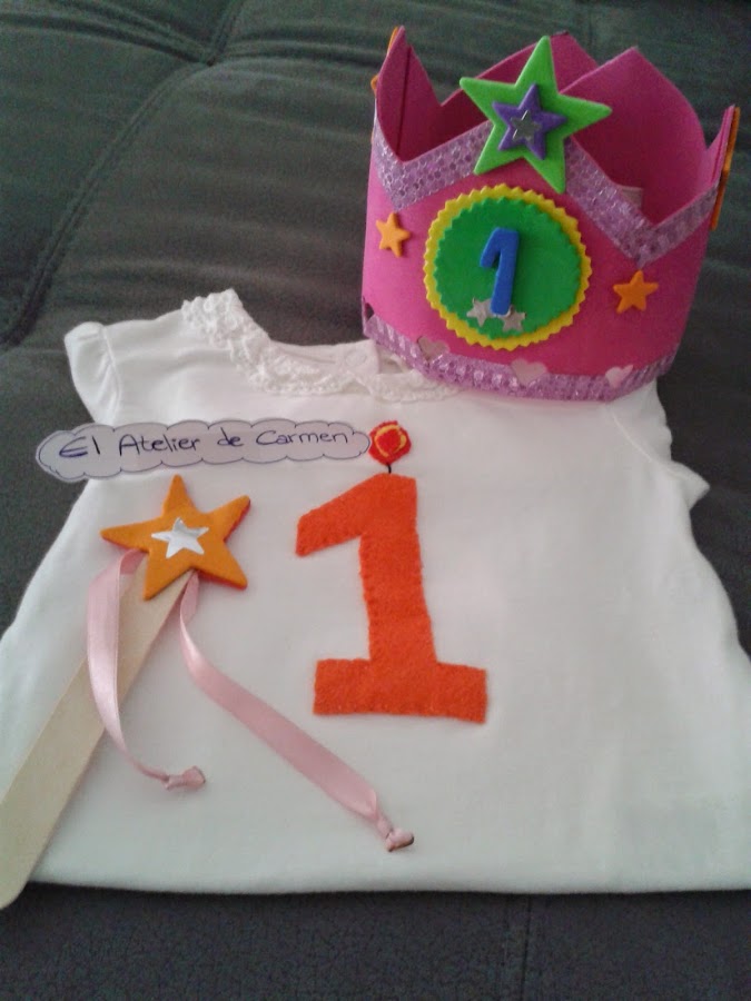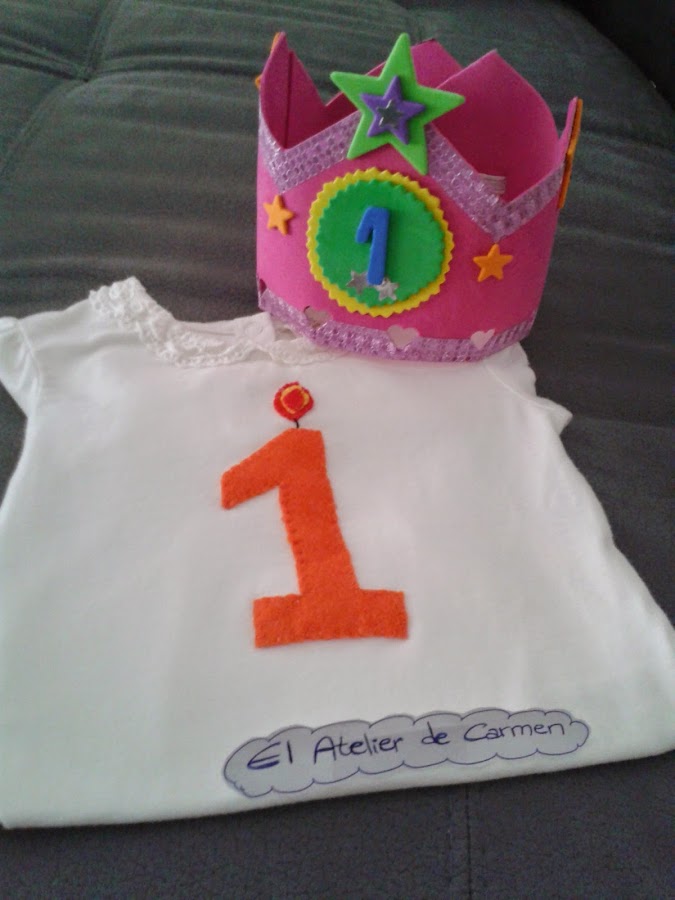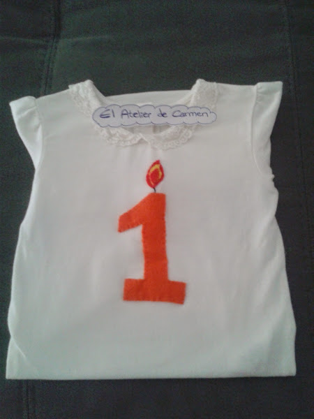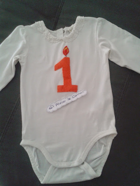Como ves, es muuuuy fácil de hacer, solo hay que recortar una pieza de fieltro con el número, en este caso el uno, y recortar unos trocitos de fieltro de otro color para hacer la llama que simula la vela de cumpleaños, coser a la camiseta o body... y listo para celebrar!