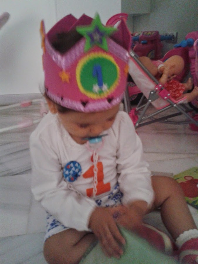Esta es la pequeña con su atuendo cumpleañero, perdonad que haya subido una foto con poca nitidez, pero prefiero que sea así para preservar su imagen, ya tendrá ella tiempo de subir fotos a redes sociales e internet cuando sea grande, jijiji