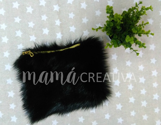 Ya he mostrado los pendientes de borlas, y en esta ocasión realizo el bolso de fiesta, hecho con tela de pelo y rematado con una cremallera dorada.