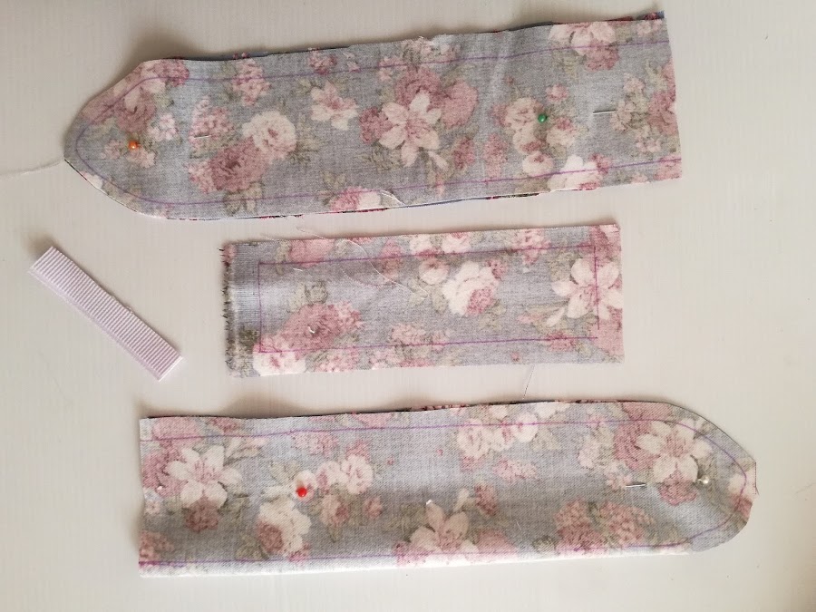 Cosemos las piezas de los lazos y las damos la vuelta. Tenemos que tener la precaución de picar en las zonas redondeadas para que quede bien redondito. Las planchamos.