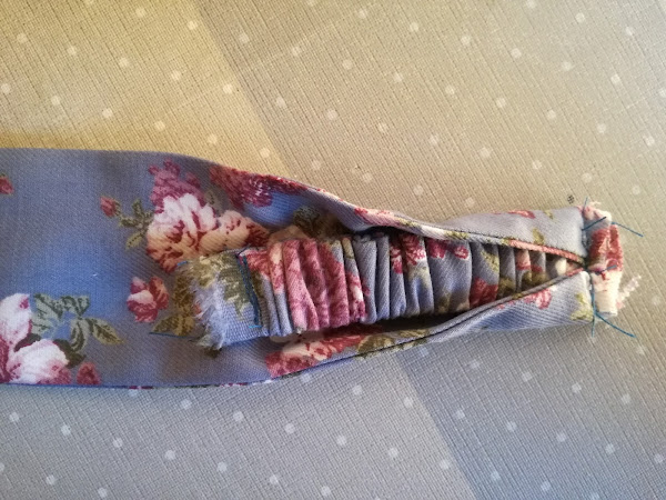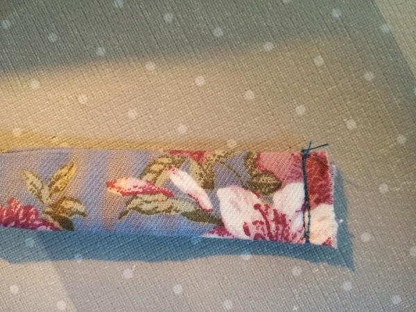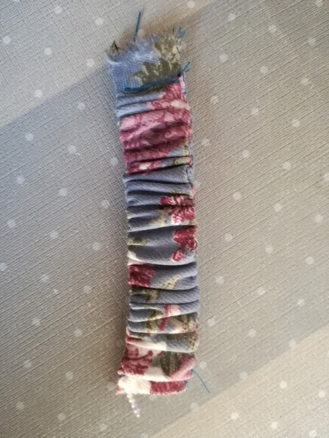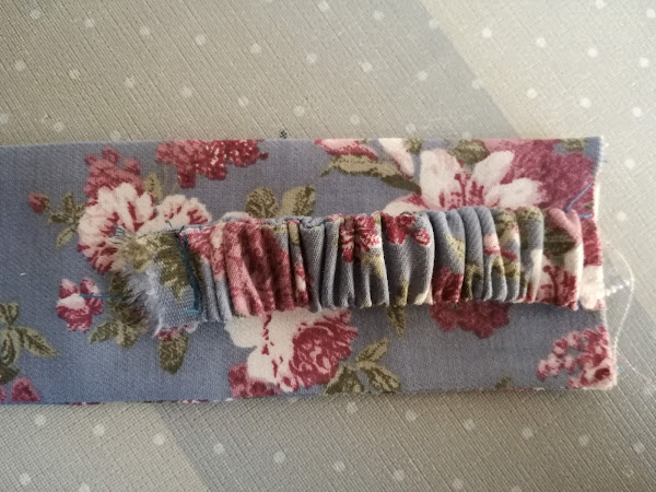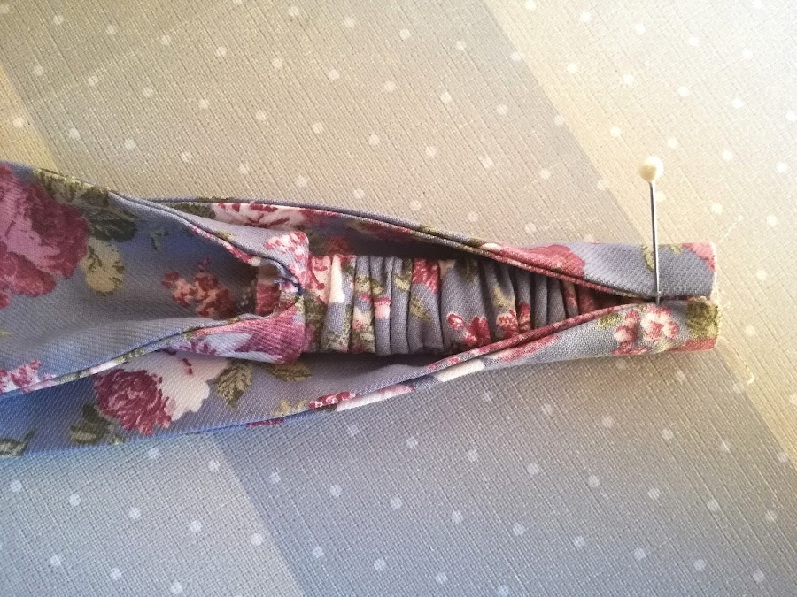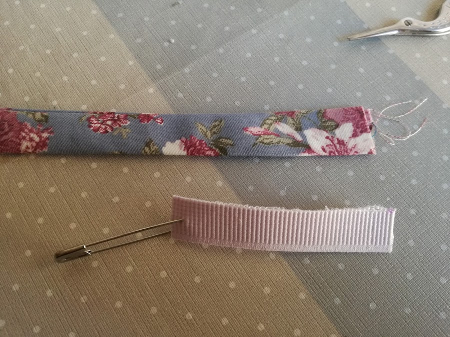 Y ahora, si que, con ayuda del imperdible, terminamos de sacar toda la cinta elástica, y cosemos al otro borde.