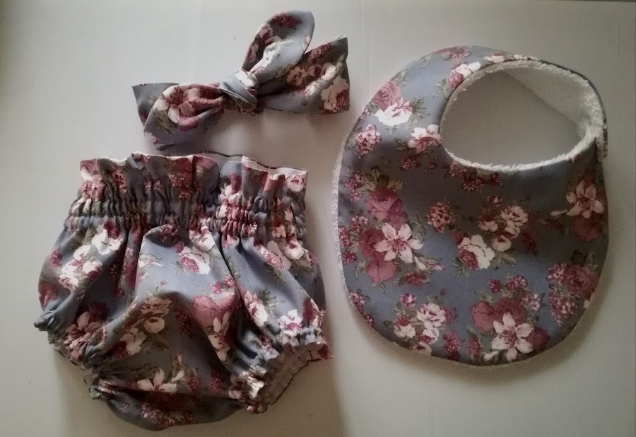 Si me seguís en Instagram habéis visto que he hecho un conjunto, con esa tela que tanto me gusta, con unas braguitas, babero y diadema o bandana a juego.