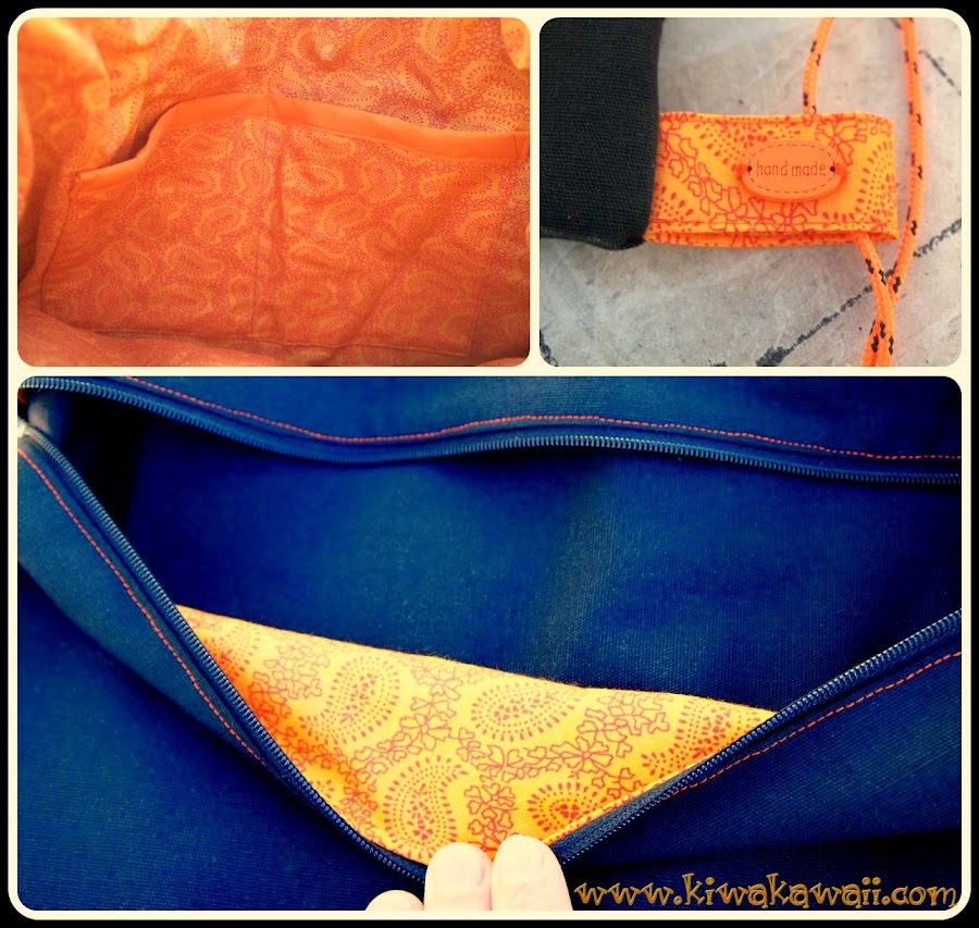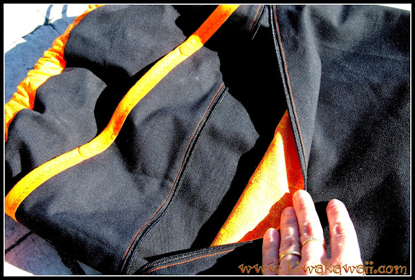 Su condición: que fuera completamente negra. Me negué en redondo, no más costuras aburridas!!! Con lo que me gusta jugar con el color... Le prometí que sería principalmente negra; y la combiné con mi color favorito: el naranja.