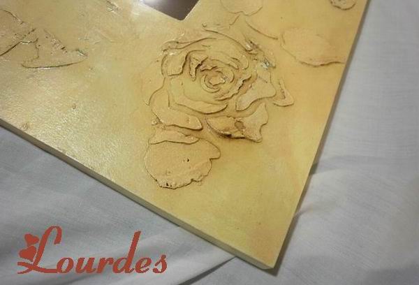 Decoupage con servilleta y pasta para el relieve con platilla de estarcido