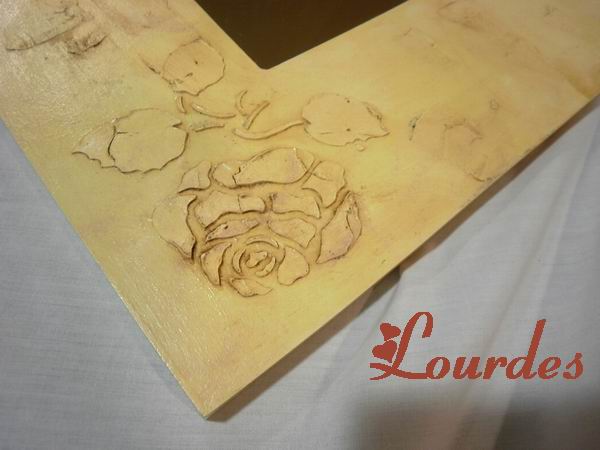 Hola de nuevo! Aquí os adjunto alguno de nuestros espejos decorados: (mas fotos y técnicas en los álbumes de fotos de www.facebook.com/manualidadeslacajita) Estos espejos tienen un soporte de madera DM y van decorados con cintas emplomadas de color cobre y plata, con motivos de decoupage -arroz y servilleta- así como con pastas de texturas teñidas con acrílico, todo ello haciendo una composición.