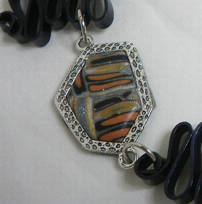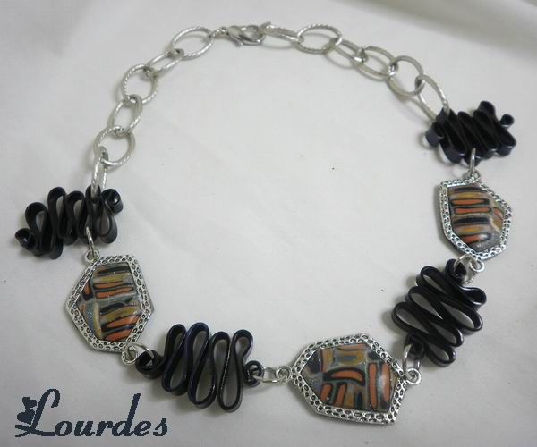 Collar de arcilla polimérica con diferentes texturas y acabados y alambre grueso. Para Inés con todo mi cariño