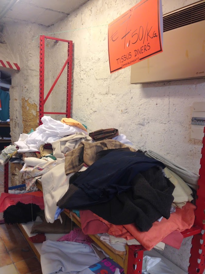 - y la otra de ¡restos y telas al peso! Sí, montones de telas amontonadas!!!