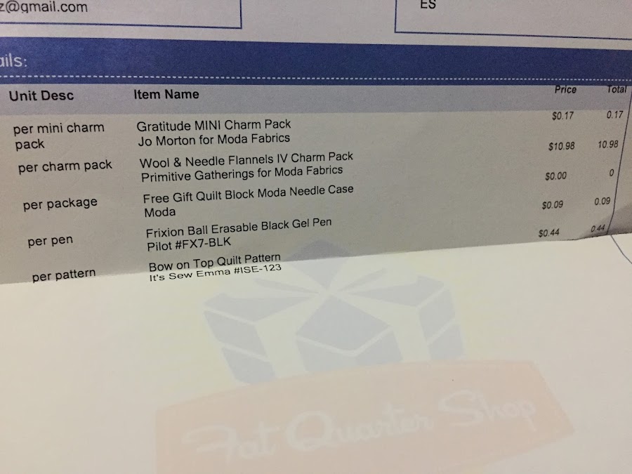 Aischhhh qué ilusión... hoy me han llegado mis compras americanas del Black Friday, las hice en la tienda FAT QUARTER SHOP y es que cuando veáis los precios os va a dar un patatussss como cuando yo los vi, no me lo podía creer y encima los gastos de envío estaban a mitad de precio, seis eurillos de USA a España y también me han mandado un regalo (con la boca abierta me he quedado) os hago el cambio de dólares a euros para que os hagáis una idea.