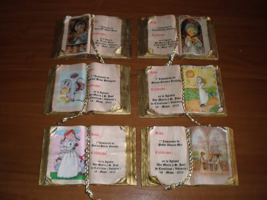 Como ya sabeis, los detallitos para regalar, los hice yo , !! que me los he currado !! jajaja , pero al menos tengo la satisfacción que les ha gustado ( o eso dicen ... ) . También he estado liada con unos mini codices , para recordatorios , esos , para regalar a los amiguitos de mi hija , que la tomaban cuando ella