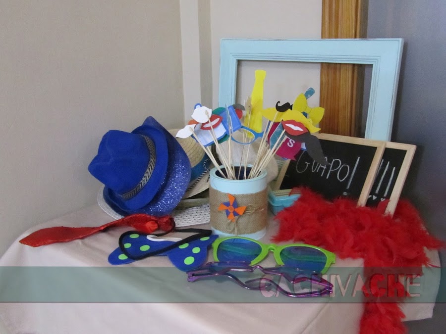 No faltaba detalle!!! gafas, sombreros, boa roja, bigotes, labios,... hasta unas pizarras y un marco. Las fotos no tienen desperdicio. Os lo recomiendo, pasamos un rato con muchas risas!!!. Aunque el protagonista no consistió hacerse fotos, no le gusta nada eso de la cámara, y yo que pensaba que así si se las haría!!!