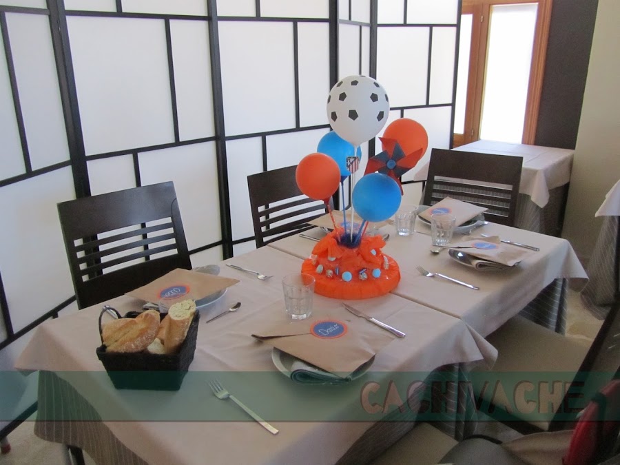 Tengo que decir que en el restaurante se portaron genial... pues me dejaron hacer lo que quise con la decoración: colocación de las mesas, donde ubicarlas,... No eramos muchos invitados, así que fue muy fácil hacerlo: Los niños en una mesa y los mayores en otra...(parecíamos los caballeros de la mesa cuadrada,gg), Ahora que ha pasado me alegro de esa decisión, pues estuvimos muy a gusto todos!!! Además la mesa dulce y el fotocall!!!.