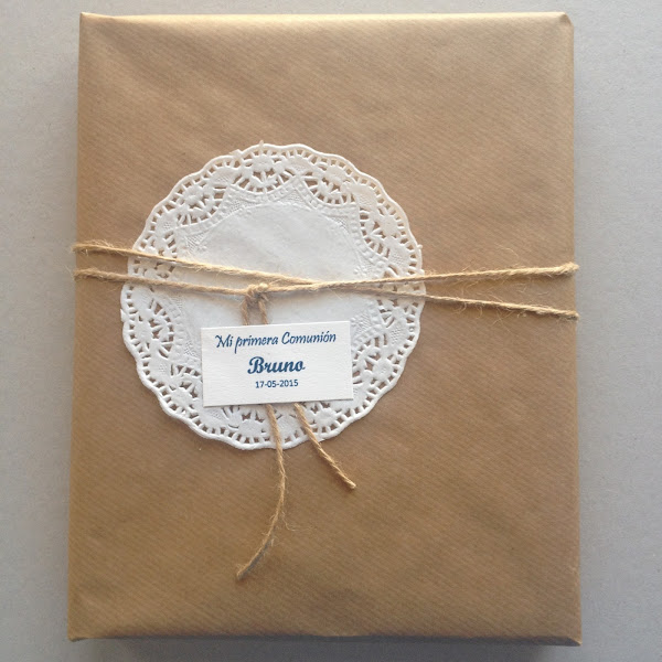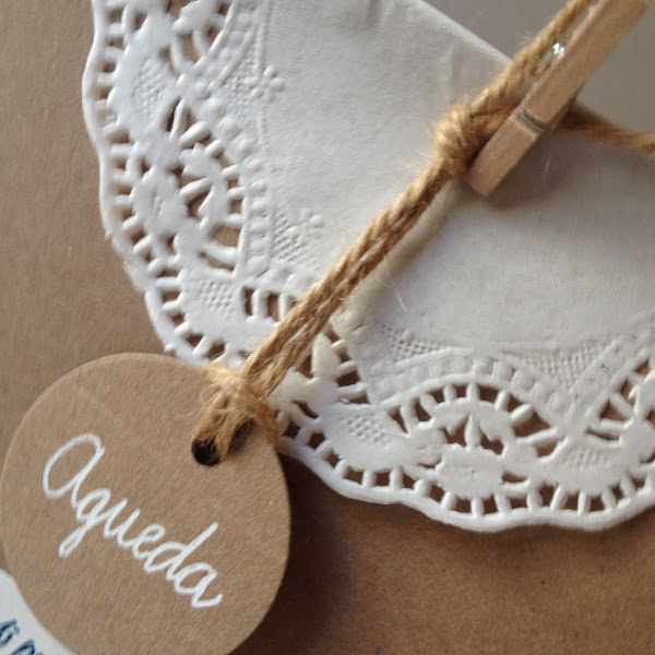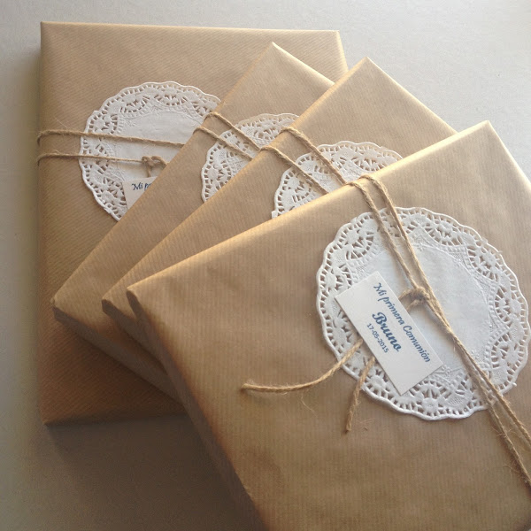 Con papel crafts, cuerda de sisal y blondas...