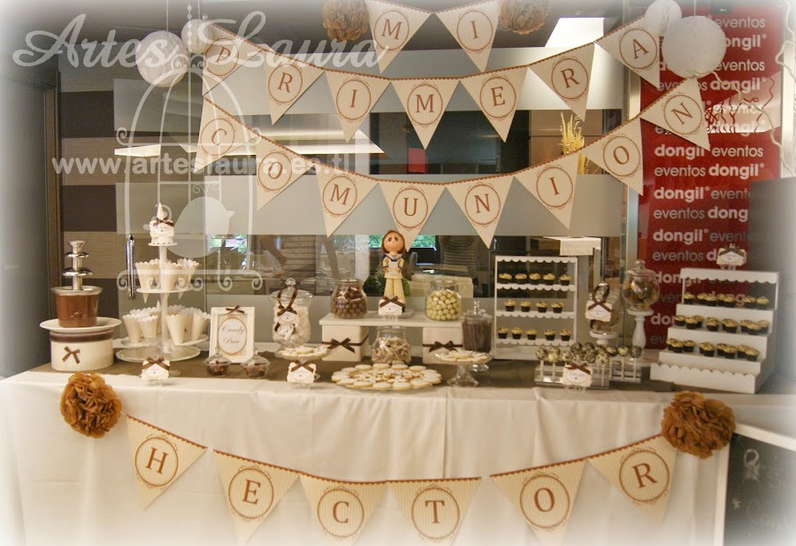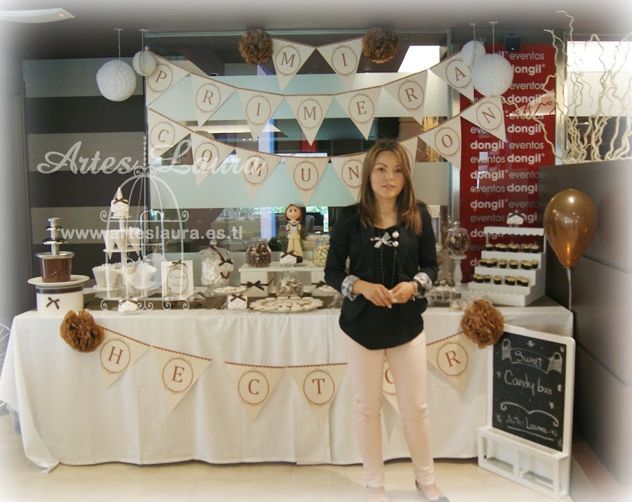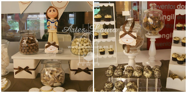 De echo para esta comunión le hice las etiquetas de los puros, las cajitas para los recordatorios, el libro de firmas, el centro de mesa infantil y el candy bar, todo acorde,pero solo dispongo de las fotos del candy bar.