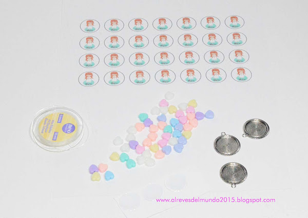 - Recorta las imágenes y pégalas a la medalla. Después pon el cabuchón.