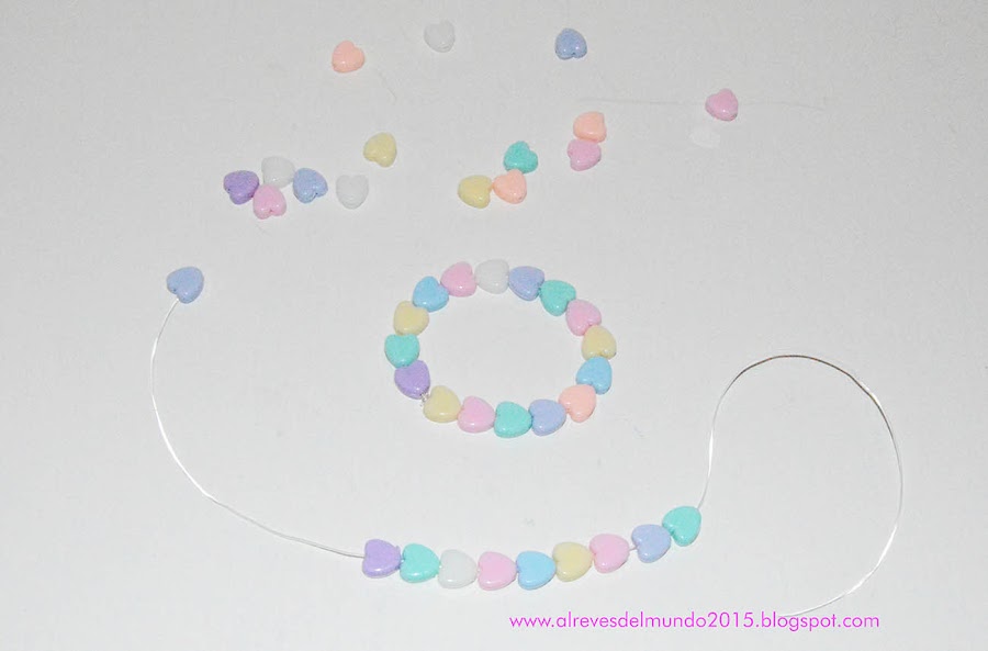 - Ir haciendo las pulseras con los abalorios.