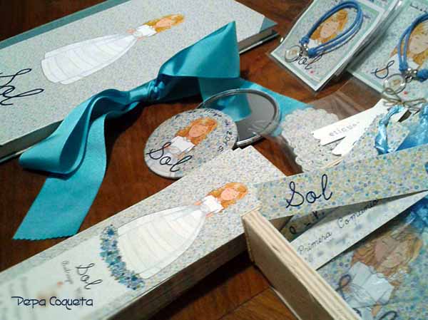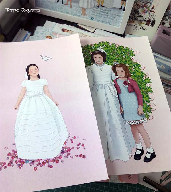 Si tienes una necesidad, capricho o una celebración muy especial, desde Pepa Coqueta te proponemos una gran variedad de papelería y detalles originales y personalizados con mis dibujos: cuadros y láminas, agendas y cuadernos, recordatorios y libros de comunión, invitaciones, muñecas recortables, álbumes, sitting plan, chapas y espejitos, medallitas y colgantes, etc.