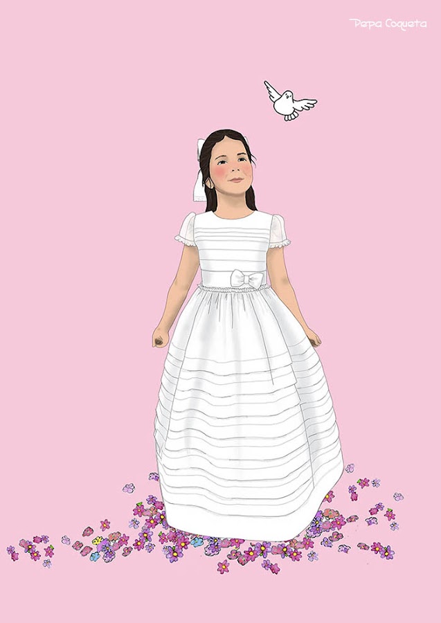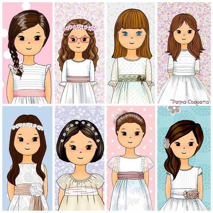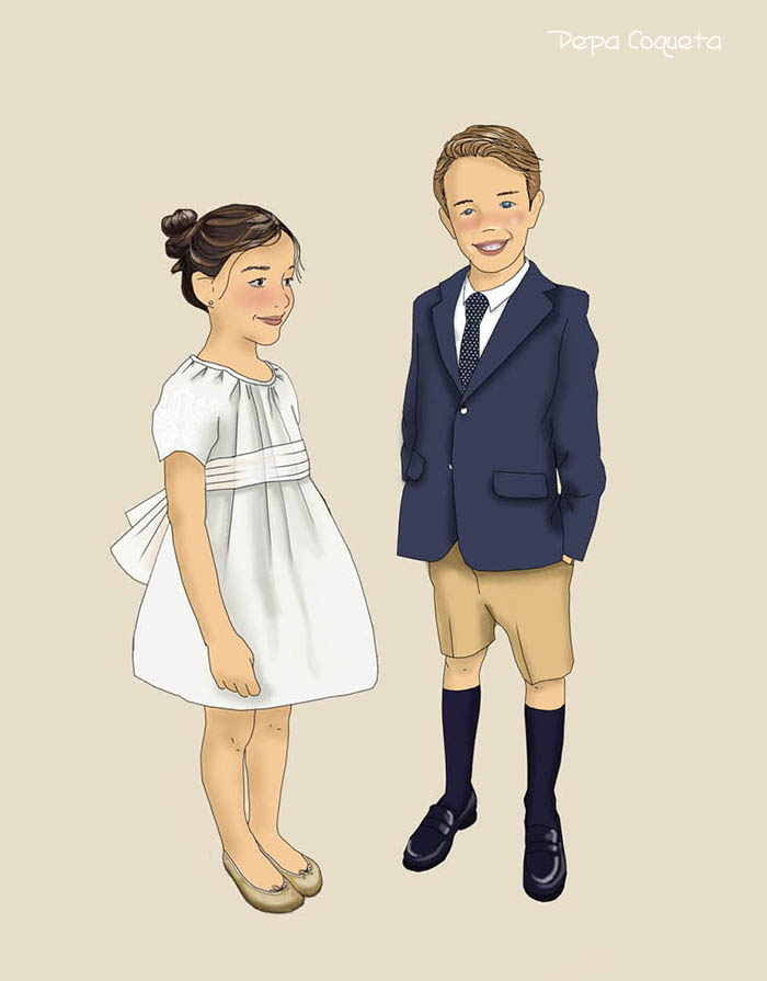 Nuestros modelos del catálogo son ideales, se modifican con las características de los niños, su estilo y color de pelo, adorno que lleve en la cabeza, gafitas, pecas, el vestido o traje... ellos se ven reflejados al instante. Pero si quieres, también hacemos retratos, sigiendo mi estilo, claro!