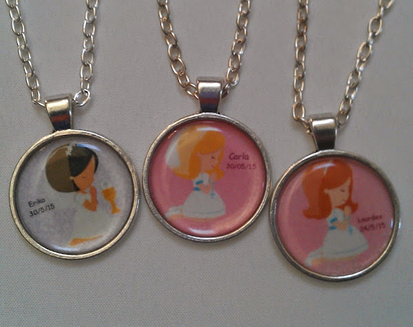 Estos colgantitos tan monos son un encargo de Merce, para las compis de su niña, que hace la 1ª Comunión este año.