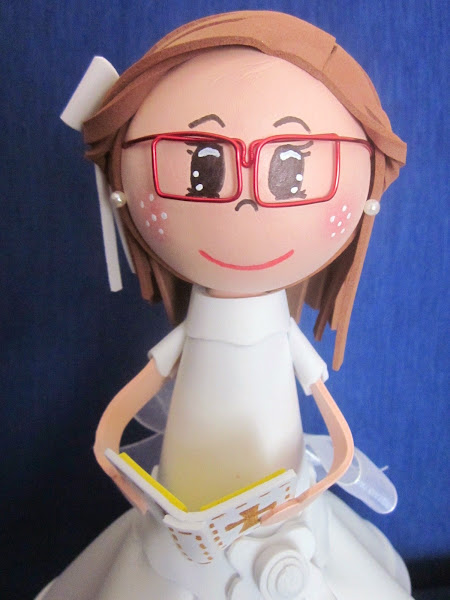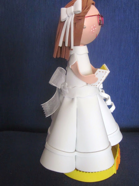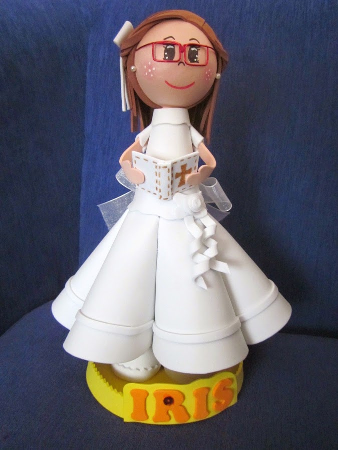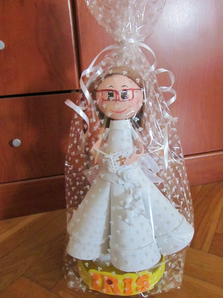 EN ESTA OCASIÓN, ES LA FOFUCHA PARA UNA COMPAÑERA DEL COLE QUE TAMBIÉN HIZO LA COMUNIÓN. DETALLE DEL PRENDIDO Y LA LAZADA CUALQUIER PERFIL ES BUENO