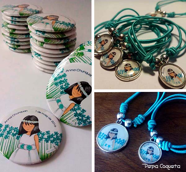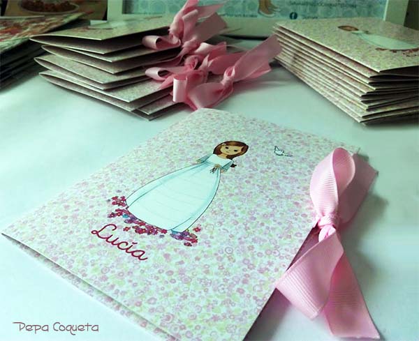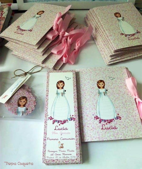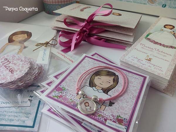 Algunas mamás fantásticas, como Montse, mamá de Anna, han tenido el gusto de enviarme las fotos de las niñas entusiasmadas con sus recordatorios, portafotos, pulseritas, libros de firmas y álbumes... transmitiéndome su alegría y agradecimiento. Algunas me han enviado mensajes de voz, me las comería a besos, qué graciosas!! Pues ese agradecimiento es mutuo, siento felicidad, emoción y satisfacción cada vez que recibo un mensaje o una llamada con esa alegría contagiosa, que me provoca una sonrisa permanente y unas ganas locas de continuar dibujando y creando cosas nuevas. Así da gusto trabajar.