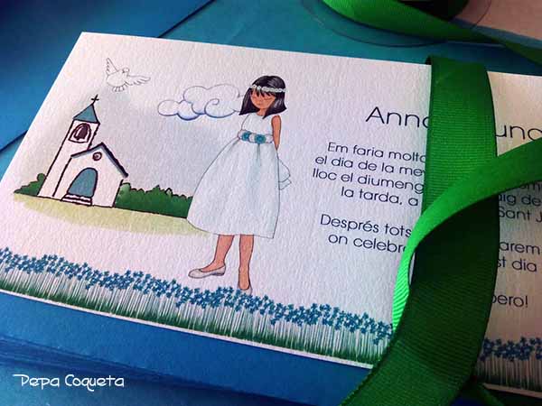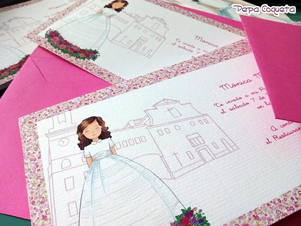 Invitaciones para todos los gustos. Con una capillita idealizada y a tono, con la iglesia real dibujada sutilmente o con todo detalle, tú eliges.