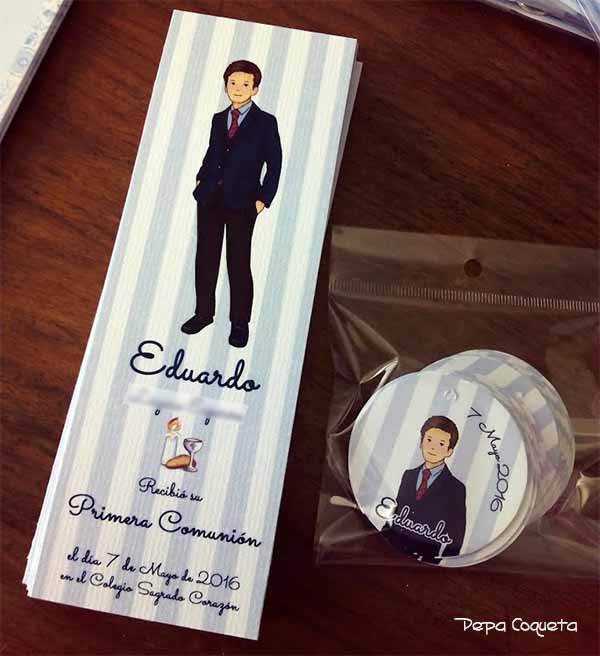 Y como siempre detalles para los invitados, para que tengan un bonito recuerdo de tan importante día. Pulseritas, chapas, imanes, recortables... y todo con sus etiquetas personalizadas y bien empaquetados en sus bolsitas. Una presentación bonita, siempre es importante.