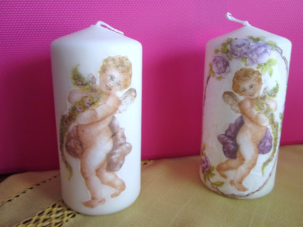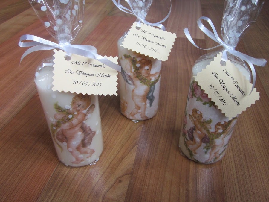 POR ESO PENSAMOS EN UNAS VELAS CON DECOUPAGE COMO DETALLE.