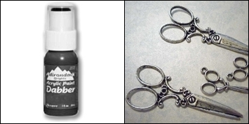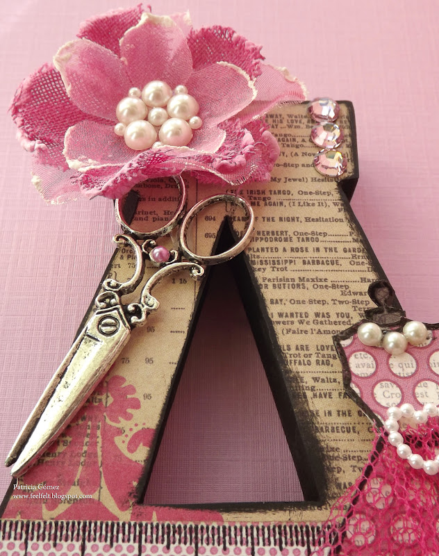 La flor es de Hero Arts JEWELED PASTEL FLOWERS, junto a ella una mega charm de unas tijeras preciosas, muy vintage, de unos 4-5 cm de largo.