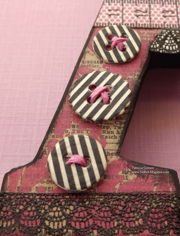 La cinta métrica y el encaje que lleva son sellos de Aladine Couture tampons.