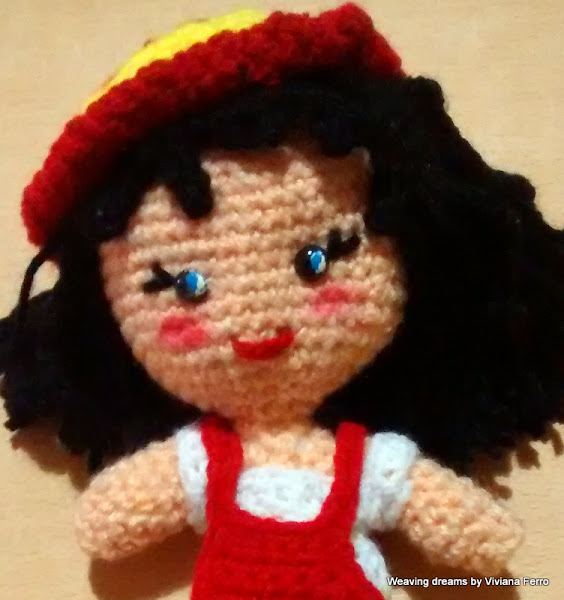 Hola arañitas! Estos meses estuve tejiendo poco, mucho calor en esta zona y un sinnúmero de proyectos.Navegando por la web encontré una muñequita que me encantó, empecé a sacar chispas a mi aguja y, como no puedo con mi genio, terminé realizando otra versión que no se parece en nada a la original pero que sigue el mismo patrón.