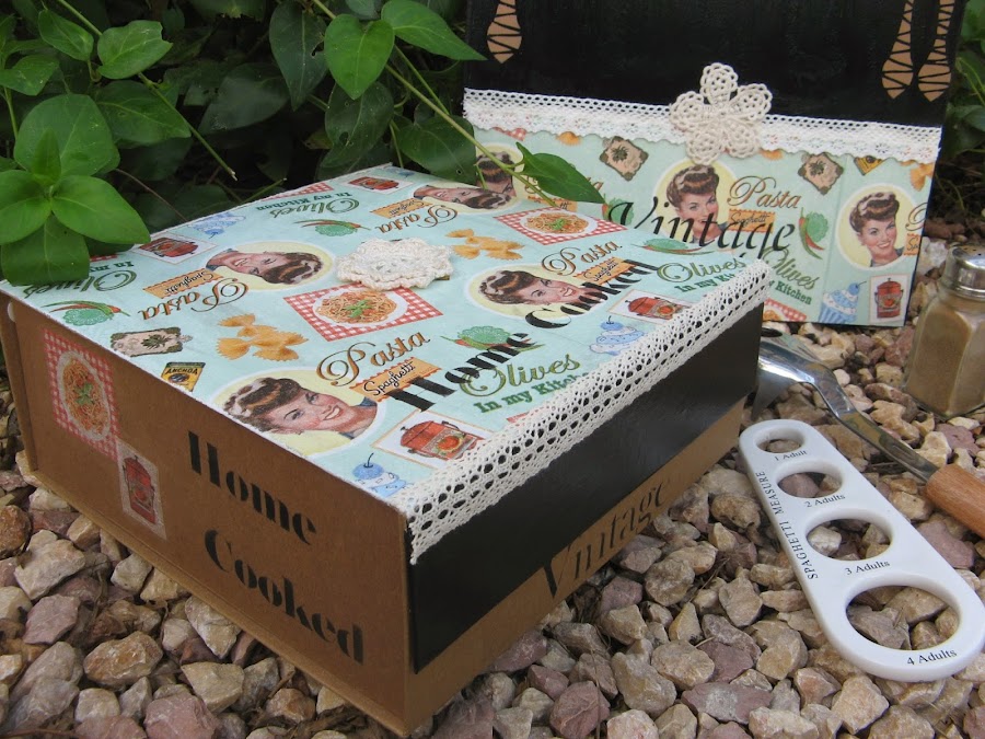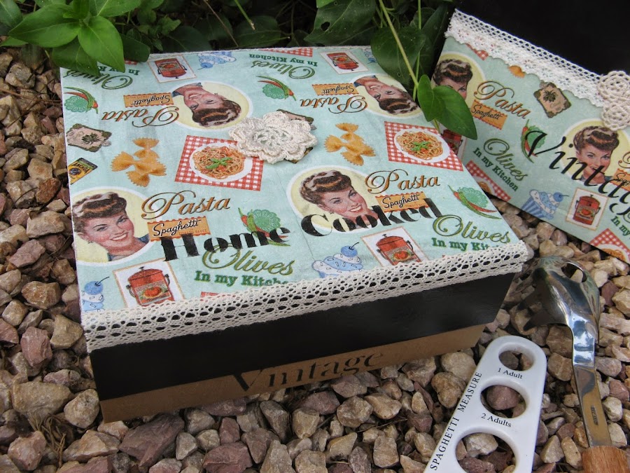 La caja es de las del conocido super al que vamos a comprar muchisimas de nosotras...solo tengo esta foto que hice cuando decoré una de estas cajas a juego con la libretita