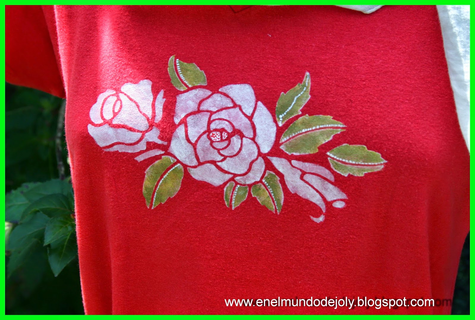 La camiseta de algodón hecha también con plantilla de stencil y puntura de tela.