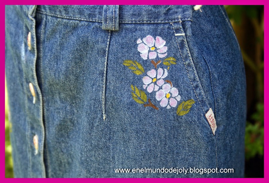 Como no, cogí mis pinturas para tela de PEBEO y las plantillas que tengo para chapucear, y me decidí por este motivo de florecitas que me pareció oportuno para la falda...