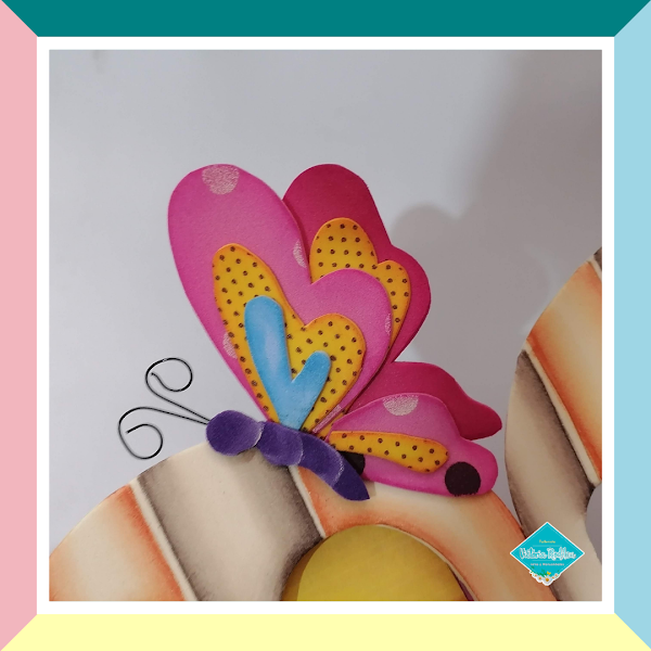 En la parte superior puedes decorar tu portarretrato con una mariposa muy colorida.
