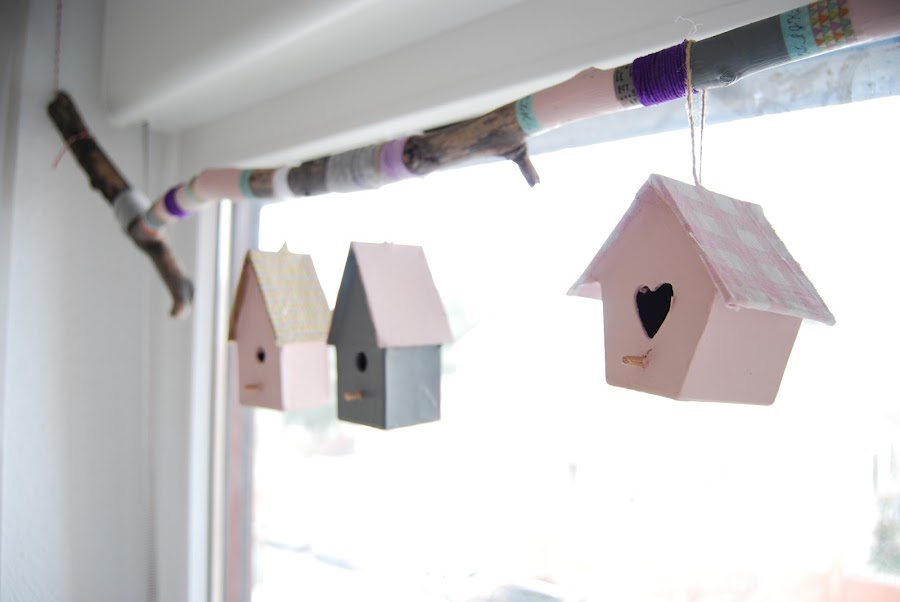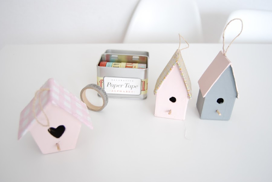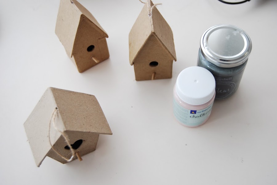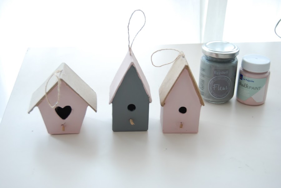 Y para completar, unas casitas de pájaros, que siempre quedan bien, no sé porqué. Aquí y aquí tenéis más tutoriales de casitas si os gustán tanto como a mí.
