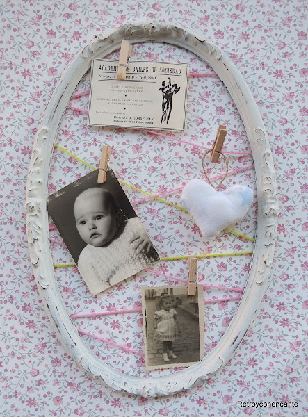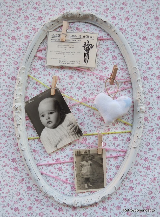 Pequeñas pinzas de madera pusieron el colofón para conseguir un estupendo marco para fotos, anotaciones o recortes. ¿Cómo lo veis?