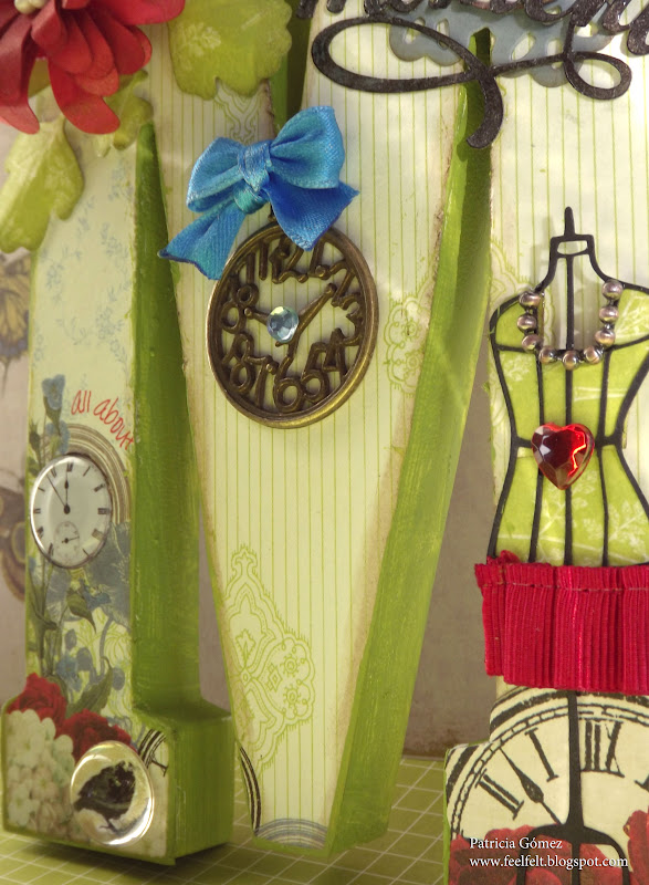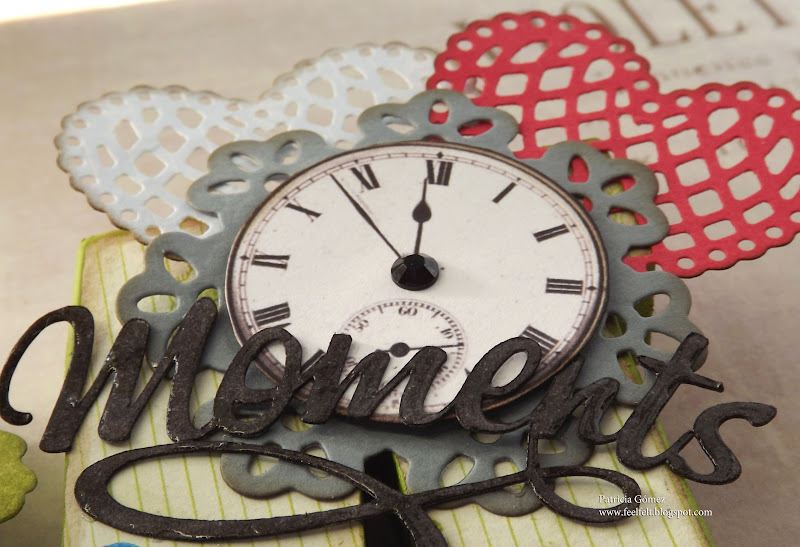 El reloj, está recortado del papel World Map de Kaisercrafts.