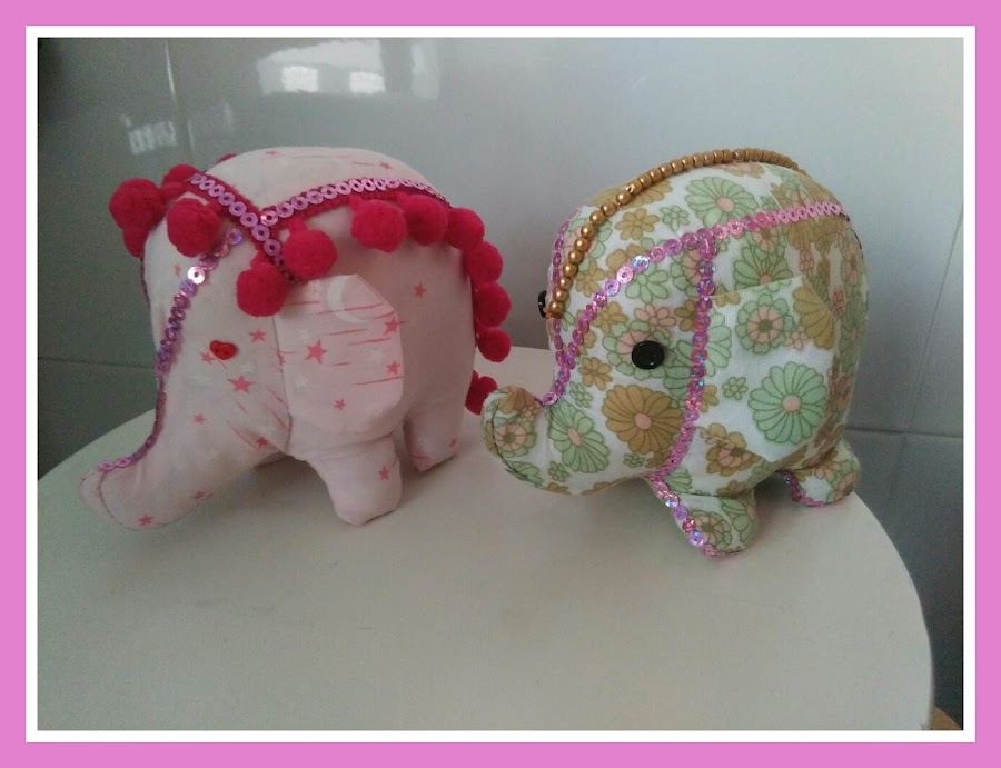 Mientras veía las cositas que allí vendían mi cerebro se trasladaba a España y me sentaba a coser elefantes como esos, así es que a los pocos días de aterrizar saqué mi caja de telas y mi preciada caja de abalorios y me puse manos a la obra a hacer mis primeros elefantes. Los adorné como si tuvieran que salir en el famoso Festival de Elefantes Pintados de Jaipur.