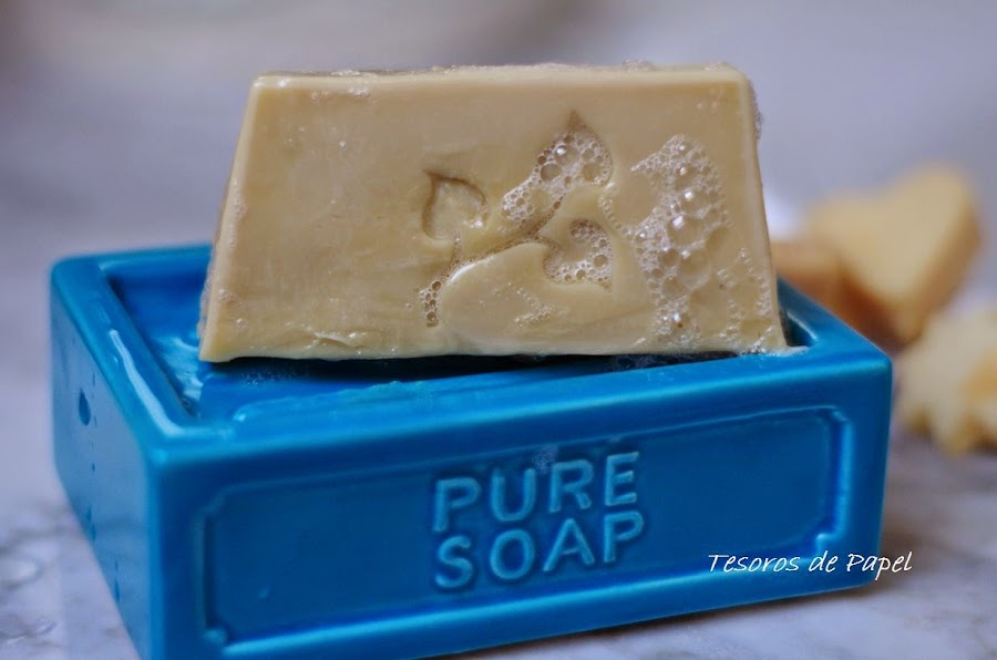 Una de nuestras aficiones es la de hacer jabón.... Y hace unas cuantas semanas, Marta (ya sabeis, el otro 50% de Tesoros de Papel) y yo tuvimos una intensa tarde jabonil.