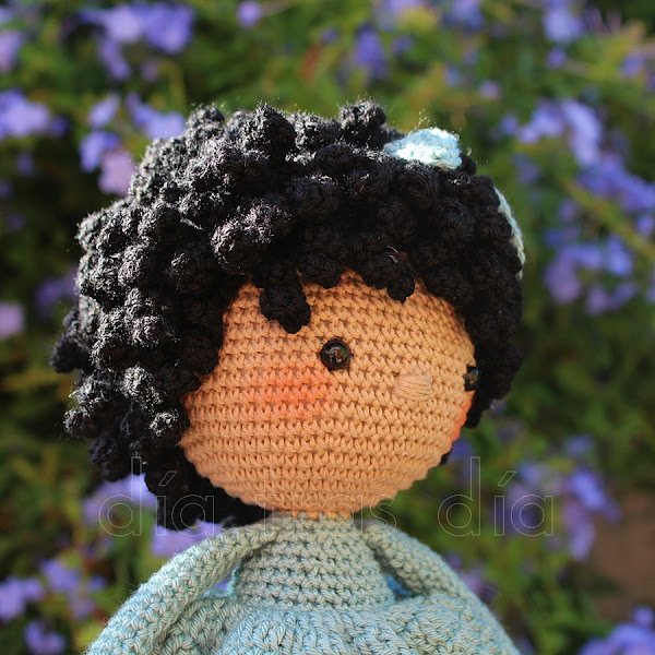 ¿Os cuento un secreto? No me imaginaba yo que me iba resultar tan complicadohacer este pelo. Y no es que sea difícil, porque la verdad es que no lo es y en el patrón está perfectamente explicado. El tema es que es infinitamente laborioso. Y para colmo, al hacerlo con hilo de color negro, se incrementó la dificultad, por lo complicado de ver los puntos en ese color. Yo perdí la cuenta de las horas que he echado para hacerlo. Pero como me decían a mi de pequeña: “Cuando esté terminado nadie te va a preguntar cuánto tardaste. Lo importante es que quede bien”. Pues esa máxima me he aplicado. Y ahora que ya está finalizada, me siento realmente orgullosa de haberla hecho y de cómo ha quedado.