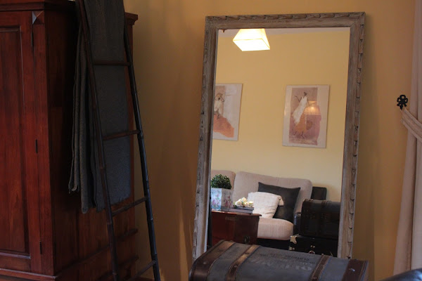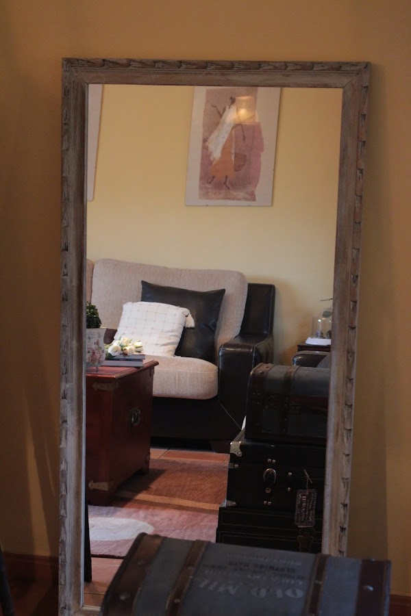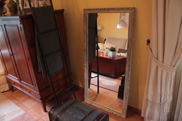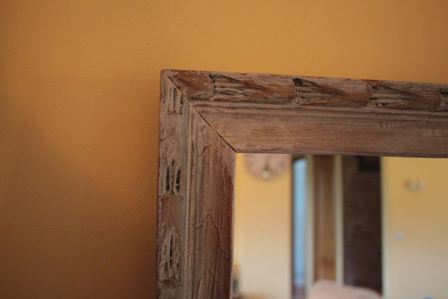Y con el marco,qué me encantaba,le puse un espejo y por aquí anda,buscando su lugar