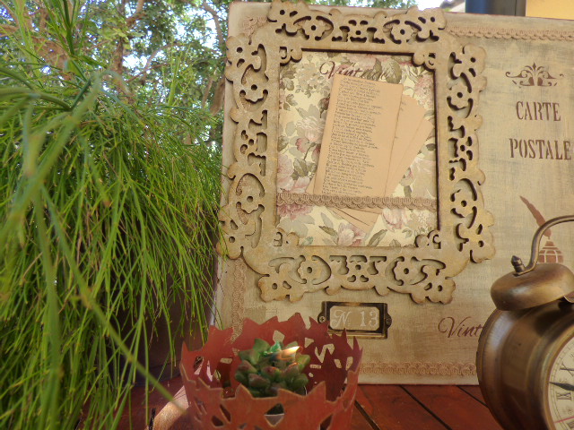 Ya tenía el marco "hilvanado", pero no se me ocurría qué hacer con él.....así que empecé a buscar un "algo" entre todos los trastos que tengo en casa, en mi cuarto de manualidades.....maderas que me dan, cosas que guardo porque seguro que algún día sirven para algo...... bueno....qué os voy a contar¡ El sindrome del señor ese tan conocido jjjjj....que por cierto.....he ido a consultar y me ha sorprendido que el filósofo griego, promulgaba precisamente lo contrario a lo que tenemos entendido.....qué curioso....