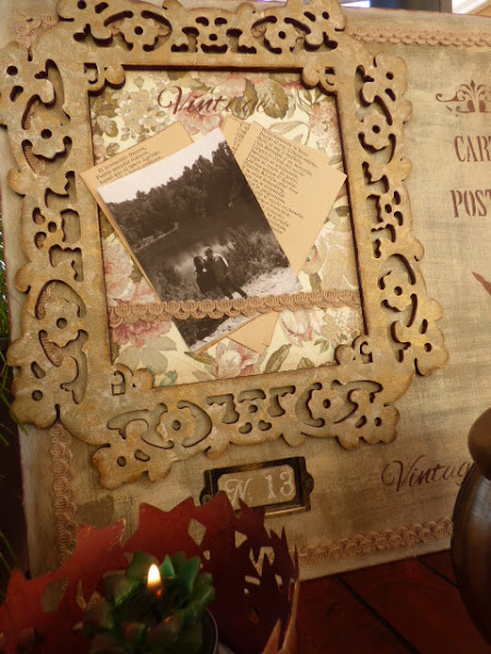 ......y una cintita de la misma arpillera para poder colocar fotos o alguna hoja de libro viejecito como he hecho.