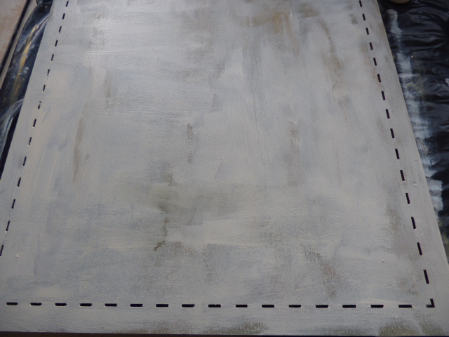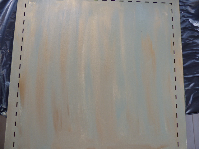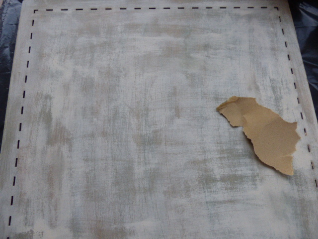 Después le doy a todo una pasadita de color blanco roto, el tono jazmin, a pincel muy, muy seco y con pinceladas, tanto en vertical, como horizontal.
