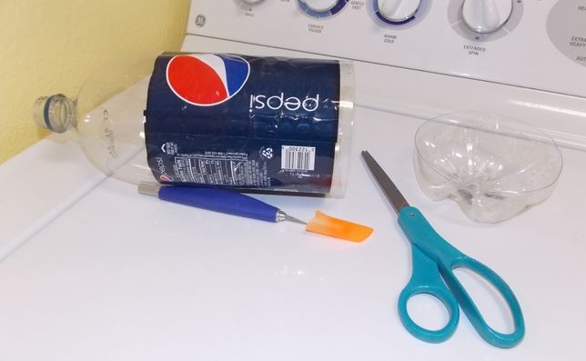 2.- Ahora, la parte de la base de la botella, córtala con un cúter o una tijera grande.