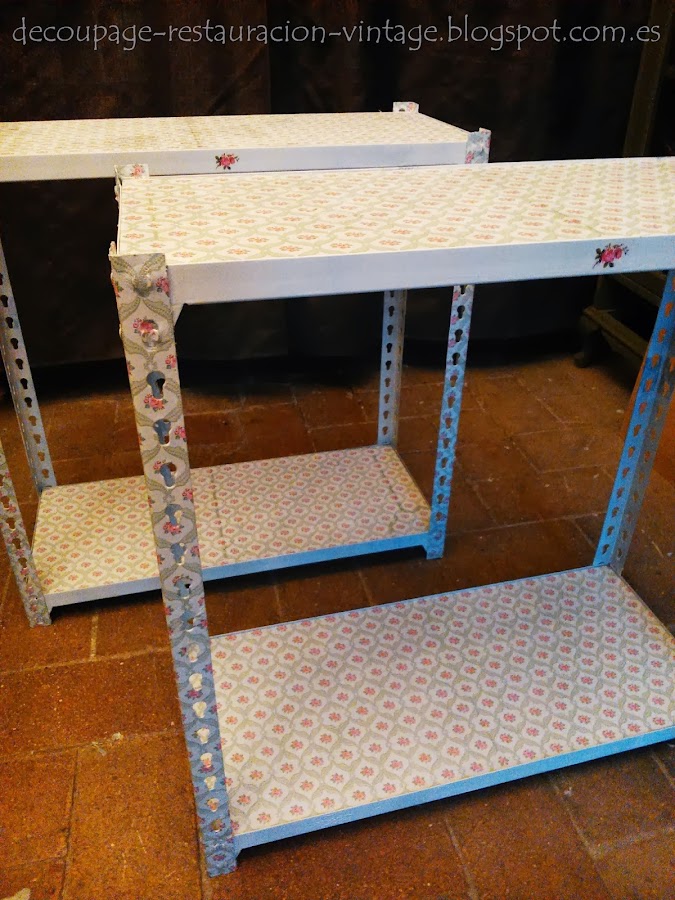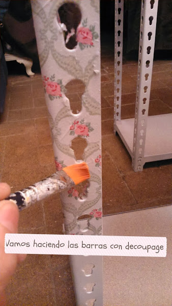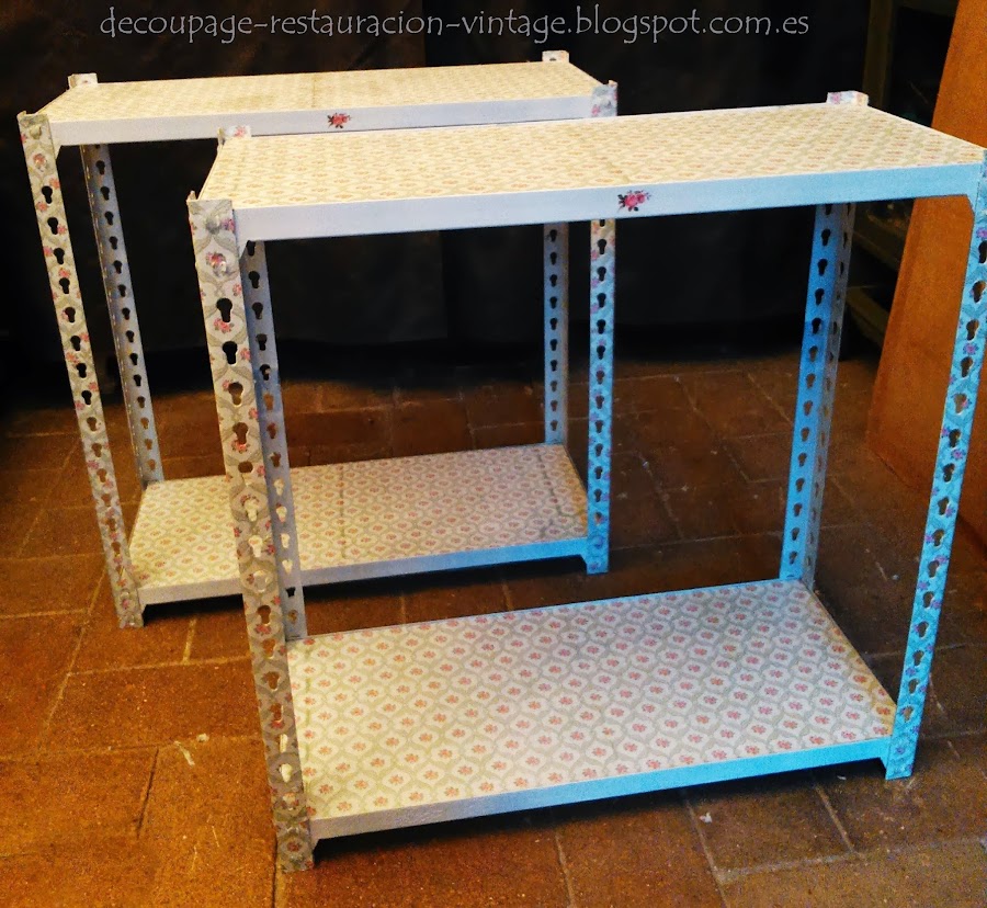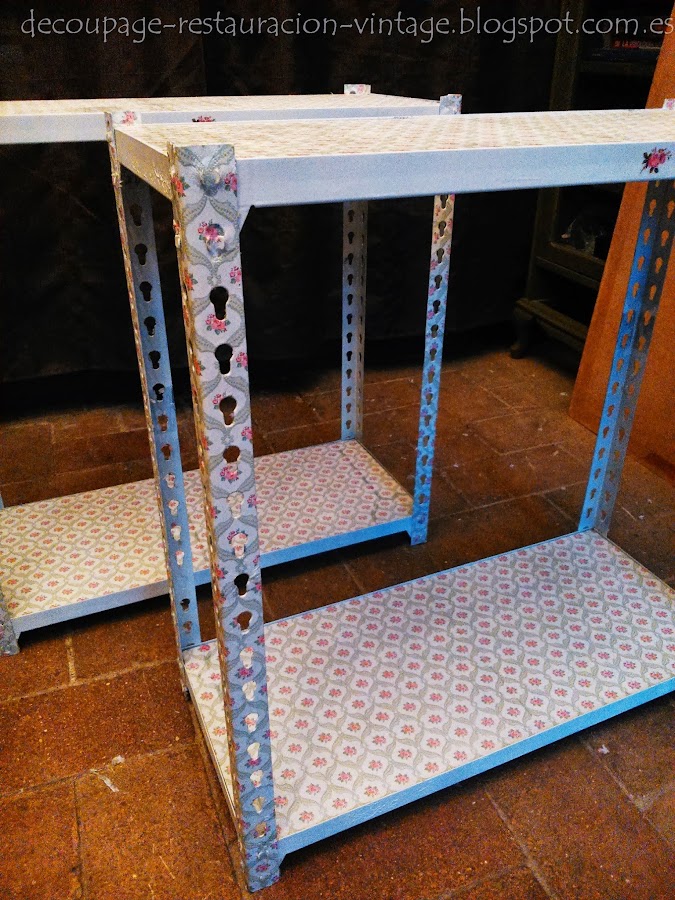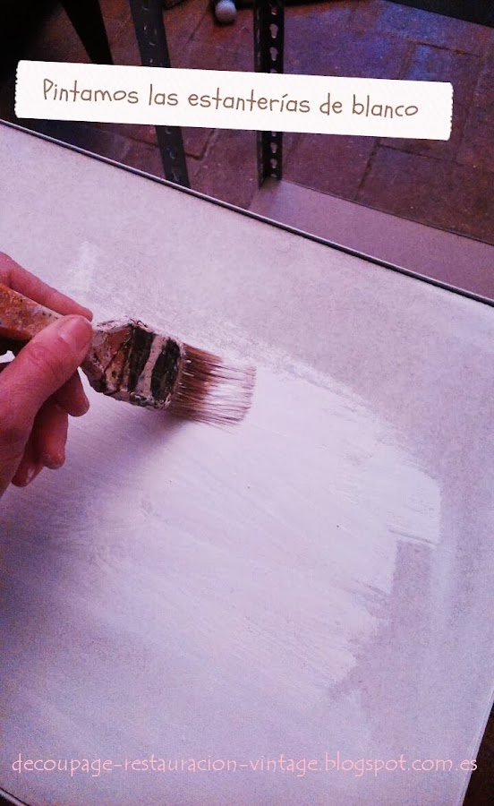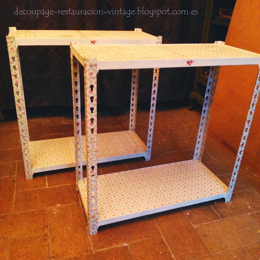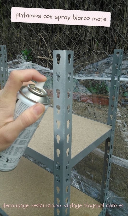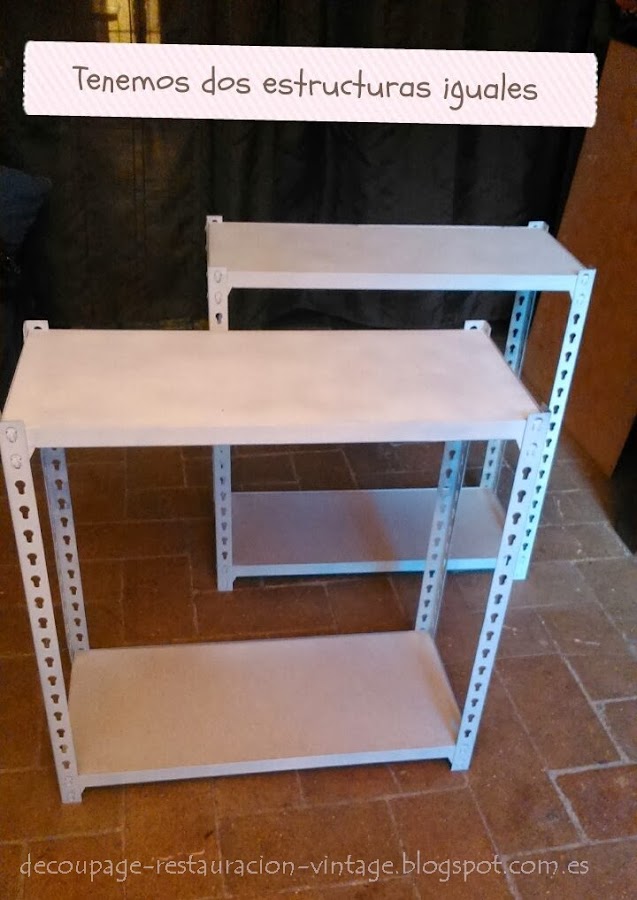 El porqué hemos cortado las barras es porque nos interesa tener dos estructuras para la utilidad que finalmente tendrá y el uso que le daremos, así que después de montarlas vamos a decir adiós al color gris de la estantería y le vamos a dar un toque mucho más alegre. El cómo lo haremos, pues cómo no, y acorde con la temática del blog, pues con decoupage, pero primero es necesario que toda la base sea blanca para que resalte mucho más, así que las pintaremos. Ahí vamos: